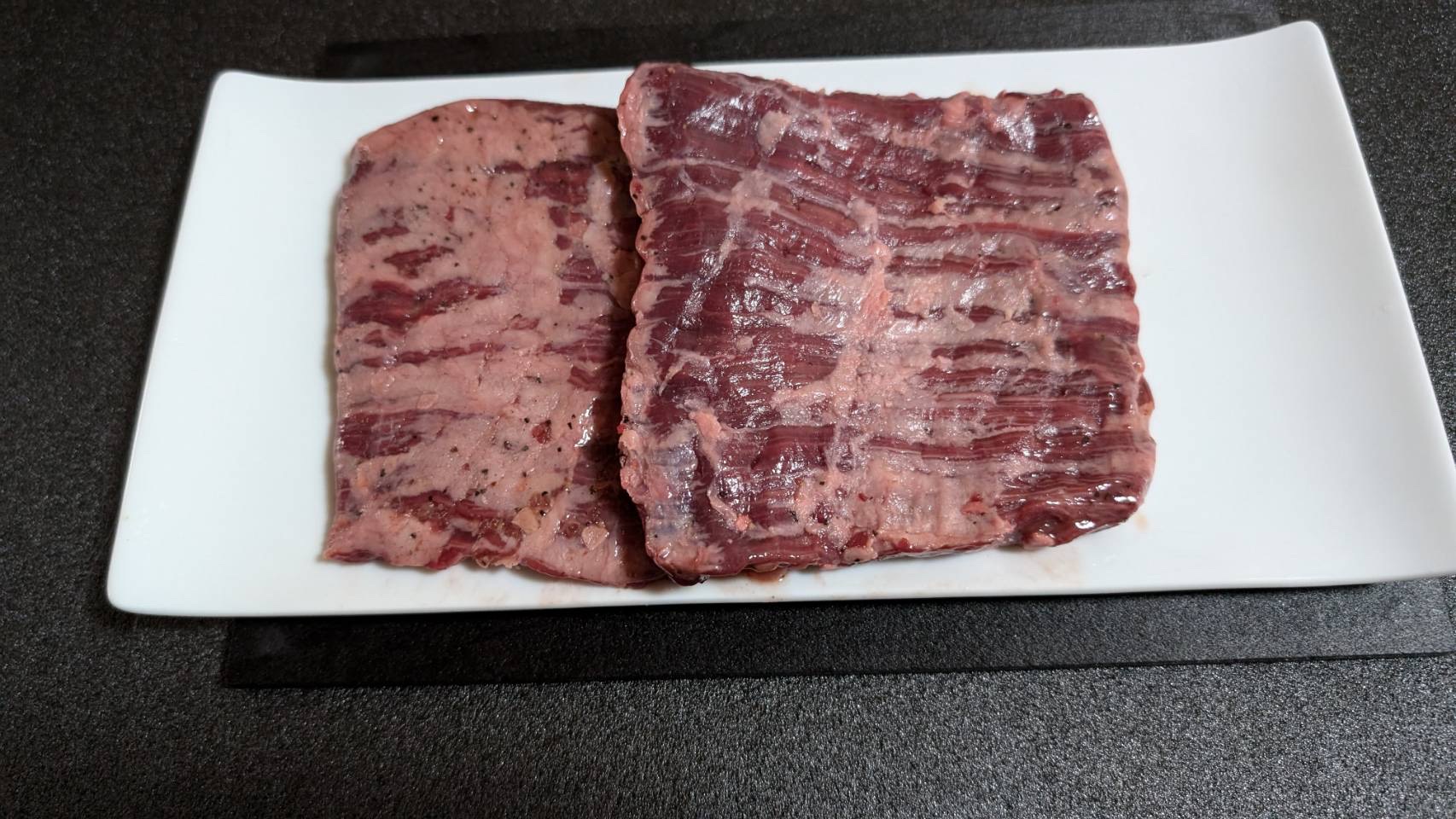 筋切り加工しステーキオイルに漬け込み、柔らかく召し上がっていただけるように加工しました!